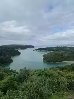 A cozy cafe and rest stop near Warumi Bridge in Okinawa, surrounded by the ocean and tranquil nature. The minimalist decor offers a menu of food, drinks, and desserts. Perfect for a relaxing break during your trip or a photo opportunity, the cafe offers a relaxing outdoor area with stunning sea views.