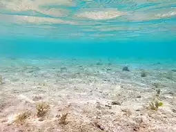 The island itself is made of white sand, but some exposed reefs make wearing sandals a safer choice. The beach features shallow, crystal-clear waters that are soothing just to look at, and visitors can enjoy swimming and snorkeling here.