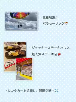 If you have a night flight on the 2nd, you can do a lot of sightseeing and activities! If you get wet on the 2nd day, it will be a pain to clean up, so I recommend enjoying marine activities that don't get you wet on the 2nd day!