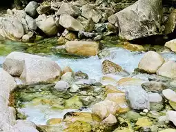 Atera Valley refers to almost the entire valley of the Atera River, which originates in the Central Alps. Because it is a rapids river, there are many rocks, but in places where the flow is calm, the river water is crystal clear and shines an emerald green. It is also known as Atera Blue, and it is simply beautiful.