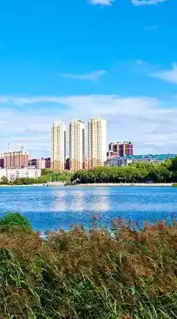 Entering the park, I almost doubted I was in Hong Kong: in front of me was a shimmering clear lake, with various splendid high-rise buildings lining the shore, resembling a Hong Kong harbor scene. I strolled along the quiet lakeside path, the breeze gentle, the lake sparkling. The magnificent buildings reflected in the water like wrinkled golden shadows floating on the surface. The modern architecture and natural beauty complemented each other, like a fairyland.
