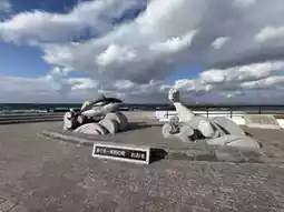 The tuna statue was larger than expected and came with an interesting backstory—it was erected in 1994, commemorating the catch of a massive 440kg Pacific bluefin tuna right in the Tsugaru Strait. Oma is famous for its high-quality tuna, and this statue proudly celebrates that legacy.
