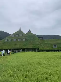 It feels like stepping into a Studio Ghibli world. Inside the mysterious building with a roof covered entirely in grass lies the enchanting world of "Taneya" and "Club Harie," two renowned confectionery brands representing Shiga.