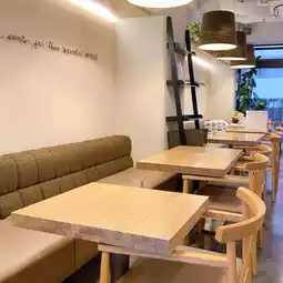 The interior of the cafe is a natural space where you can feel the warmth of wood, making it perfect for dates, friends, or spending time alone.