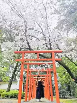 We arrived a little early and didn't see many cherry blossoms along the way, which was a pity. Fortunately, there were quite a few cherry blossoms blooming near the Torii, so it was not a wasted trip. If you want to come here to enjoy the cherry blossoms, it is recommended to check the cherry blossom forecast first to avoid a wasted trip.