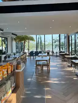 A great atmosphere that you can't miss, surrounded by green trees. There are both drinks and sweet and savory dishes for you to try.