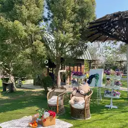 Cafe, restaurant, garden atmosphere, lots of cute photo spots and activity areas