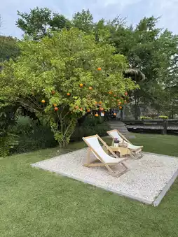 Let's start with the atmosphere. This is a cafe with a very large area, with many zones. It's a shady farm with fresh air. There's a zone decorated in a European farm style. It's fun to walk around and take photos because every spot is beautiful. 📸🌾