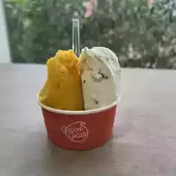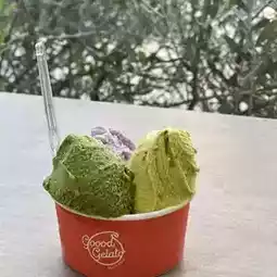 🍨 Afterward, we walked to Goood Gelato, a cozy Italian gelato shop with a pastel-colored exterior. The shop offers a wide range of flavors, and we opted for "Rich Mango," "Salted Chocolate Chip," "Matcha," and "Purple Sweet Potato." Each scoop was pure and natural in flavor, with the mango and salted chocolate standing out the most. We ordered two cups with two and three scoops respectively, totaling 1,842 yen. With sunlight streaming through the windows and the gelato melting slowly, it was the perfect leisurely afternoon during our trip.