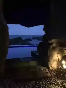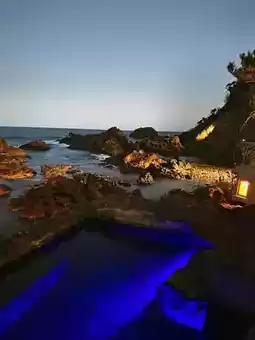 The atmosphere changes completely when the lights are on at night. The open-air ocean view hot spring is superb 😎