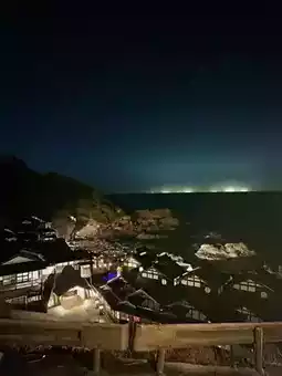 First, cross the Himinoe Bridge. The scenery here is stunning: the ocean and the suspension bridge. Stop to admire and relax. Then head to Himi Banya Street for a stroll and a bite to eat.
