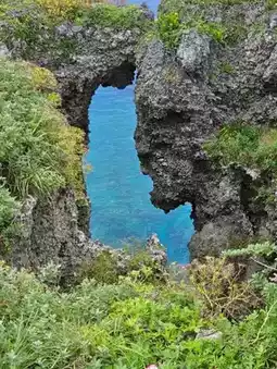 A 20-meter-high cliff made of Ryukyu limestone. The rock protruding into the sea resembles an elephant's trunk, making it an iconic photo spot.