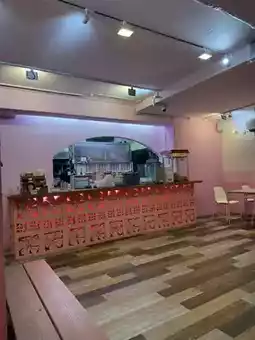 The Garlic Shrimp, a popular garlic shrimp restaurant, is a striking pink building in Onna Village.