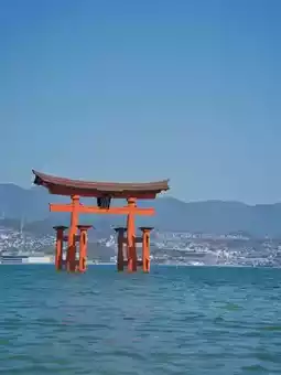 Itsukushima Shrine, located on Miyajima in Hatsukaichi City, Hiroshima Prefecture, is famous as one of the Three Most Scenic Views of Japan, and is also known as "Aki no Miyajima." The large vermilion-painted torii gate floating on the sea is breathtakingly beautiful and is registered as a World Heritage Site.