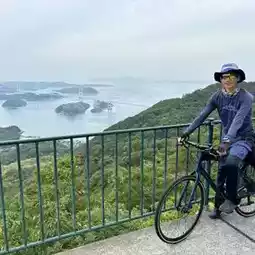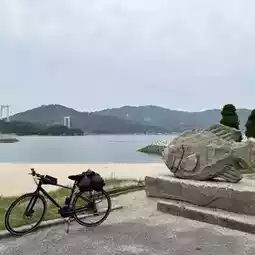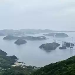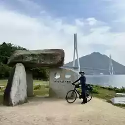 Today we set off from the guesthouse on Ikuchi Island, passing through Omishima, Hakata Island and Oshima, and finally passing the Kurushima Kaikyo Bridge, a magnificent bridge symbolizing the Shimanami Kaido. It was opened in 1999 and is connected by three bridges. It is about 4 kilometers long and is the world's first three-link suspension bridge. The Kameroyama Observatory Park on Oshima (301 meters above sea level) is one of the best viewing spots on the Shimanami Kaido. You can enjoy the magnificent view of this magnificent bridge crossing the Kurushima Strait. It is worth visiting. On May 3, I took a ferry from Takamatsu to Kobe Port. After 20 days, I returned to Imabari City, Ehime Prefecture, Shikoku. This "Seto Inland Sea Cycling Tour" came to a successful conclusion. Thank you to Master Kobo for accompanying me all the way. The Shimanami Kaido is also the most relaxing and pleasant journey I feel during my bicycle trip in the Seto Inland Sea. The warm sunshine is matched with the sea breeze, the well-planned bicycle paths, and there are amazing views at every corner. If there is a chance, I would like to take my wife to revisit this beautiful Shimanami Kaido together...