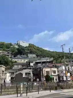 To reach Senkoji Temple, you first need to pass through Hon-dori Shopping Street after leaving the station to take the cable car. Hon-dori Shopping Street has small alleys branching off on both sides—one side offers views of the railway, while the other side overlooks the port. The street has a somewhat Showa-era vibe, with buildings that are neither too new nor too old, and quite a few mixed-style structures combining Japanese and Western elements.