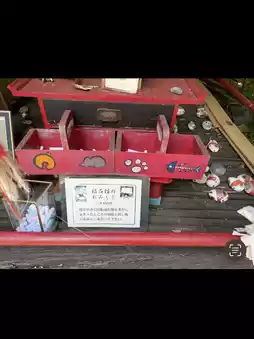 Cat Alley also has a small Cat Shrine. It is unattended by humans and rarely visited by people. To draw a fortune slip, you first spin the cat stone. Next to the cat stone are four quadrants marked with a mouse, fish, bell, and paw print. Depending on where the cat stone stops, you pick a slip from the corresponding box. I drew the only bad fortune I've ever gotten in Japan here, but I think it might be because I had just visited Rabbit Island the day before, petting rabbits and even bringing them food, but I didn’t bring anything for the cats. Perhaps the Cat God was displeased, thinking, "Why are you here after petting rabbits?" Haha.