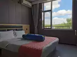 The room I stayed in truly understands the hearts of young travelers! Its minimalist decor is highly photogenic, especially the large window that frames the blue sky, white clouds, and green trees outside like a natural painting. The blue plush toy on the bed adds a touch of cuteness, and lying there, you can enjoy the clouds drifting by. All the fatigue from the journey melts away in this space. In such a room, even doing nothing—just gazing at the sky and daydreaming—feels like the best way to indulge in a holiday.