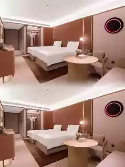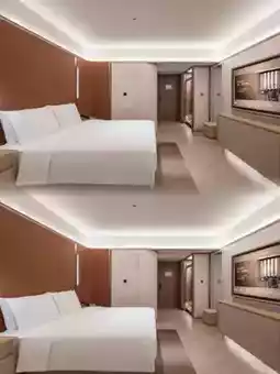 The hotel features a unique exterior design and elegant interior decoration. The lobby combines amber stone, walnut wood, and antique copper materials in a Maillard color scheme, paired with a six-pointed star crystal halo and soft lighting design, creating a spacious yet warm and elegant atmosphere. The hotel has more than 80 rooms, offering seven different types including king rooms, twin rooms, parent-child rooms, and family rooms to meet the needs of various travelers.