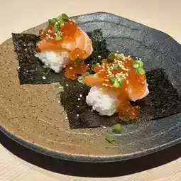 ▼ Fatty Salmon and Overflowing Salmon Roe Hand-Rolled Oyako Sushi 1,188 yen