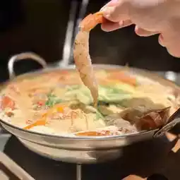 Shabu-shabu plump red shrimp in a Saikyo miso soup infused with rich shrimp miso. The sweetness and savory flavors are enhanced, filling your mouth with happiness.