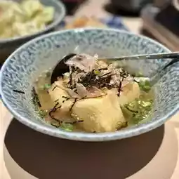 The deep flavor of the Japanese-style dashi broth is enhanced by this deep-fried dashi tofu, creating an exquisite contrast between the crispy batter and smooth tofu. This heartwarming dish brings out the rich flavor of the Japanese dashi broth.