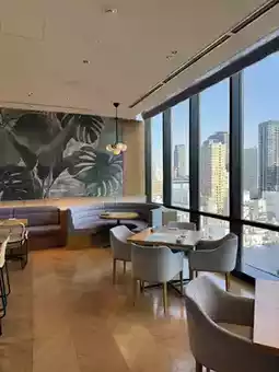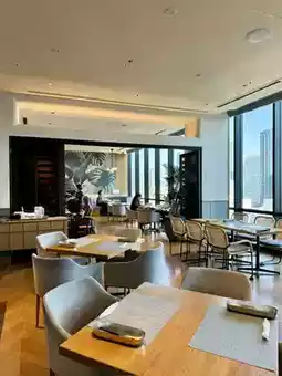 It's not crowded, and you can relax in a window seat on a high floor while enjoying the view of Osaka.