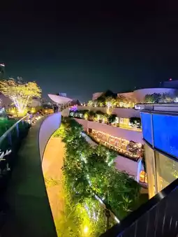 There are famous brand shops, restaurants, a movie theater, and a rooftop garden.