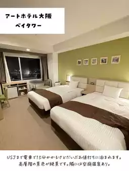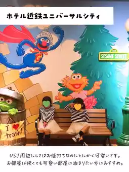 They have Sesame rooms, the renovated rooms are cute, and it's attractive that you can walk to USJ in Universal City in 3 minutes. The interior is cute, but the layout is like a business hotel, so it's a good deal among the official hotels.