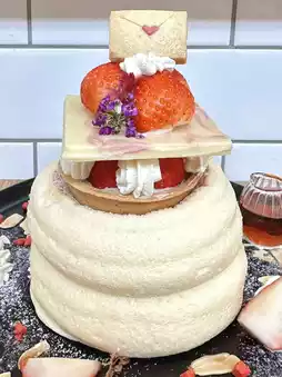 Underneath are strawberries, white chocolate bars, and an impactful tart 🥧.ᐟ.ᐟ