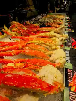 As you walk into the market, you'll be attracted by various seafood stalls. First, we recommend trying fresh sashimi, such as salmon, tuna, and sea bream. Each slice is thinly cut, smooth and tender in texture, and tastes heavenly with a bit of soy sauce! 🍣✨