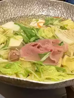 The delicate umami of the special selected black-haired Wagyu melts into the golden broth, and the refreshing taste of the green onion-wrapped thinly sliced tongue stands out. The pork loin and pork ribs are juicy, and the sausages are surprisingly delicious. The acidity of the ponzu sauce tightens the overall flavor. The luxurious taste spreads throughout the mouth, leaving a pleasant lingering aftertaste—a blissful experience.