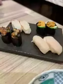 Black-haired Wagyu meat sushi is beautifully garnished with salmon roe, and uni sushi offers a rich flavor that is the best. Completely satisfied with the exquisite meat sushi.
