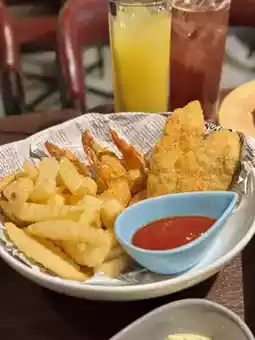 Generous portions of fish and shrimp coated in crispy batter☺️
