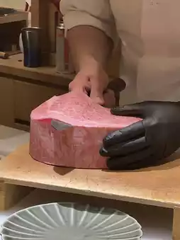 The crispy seaweed combined with Wagyu and medium fatty tuna is surprisingly delicious.