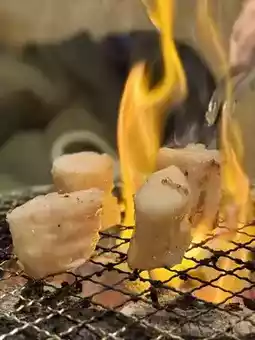 When quickly seared over charcoal, the fat of the meat melts and a savory aroma spreads!