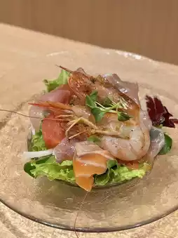 Plump shrimp & fatty salmon with the saltiness of prosciutto as an accent.