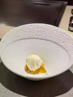 - Seasonal dessert: Vanilla ice cream and mandarin compote
