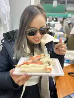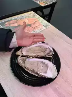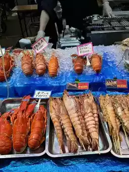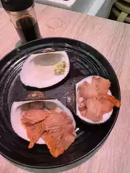 Then we started our seafood journey, the first thing we ate was the chicken puffer fish, the first time I ate chicken puffer fish sashimi, it was surprisingly good, the meat was very bouncy, and there was no fishy smell at all. In addition, walked to another and ate two extra large oysters, red mussels, the first time to eat this kind of ready-to-eat, and really fresh and sweet a lot of food in the aquatic market. 🐟