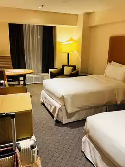 The hotel space is large, and a double room can easily fit four 29-inch suitcases.