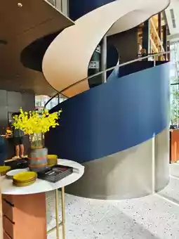 The hotel lobby, coffee bar, bar, and restaurant are all on the same floor. When I first entered, I thought I had gone to the wrong place because it didn’t look like a traditional hotel lobby at all. The design is quite stylish, with a vintage feel, both fashionable and well-designed, giving a very nice overall impression.
