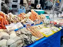 When you visit Osaka, Japan, you must go to Kuromon Market. This is a seafood sashimi market with a wide variety of seafood. The sashimi and seafood here are very fresh. There are over 100 shops in this market, and the opening hours are very convenient for tourists. Each shop has its own unique features, offering sashimi, seafood bowls, sea urchin, or freshly grilled lobster and scallops, all of which are very popular with travelers.