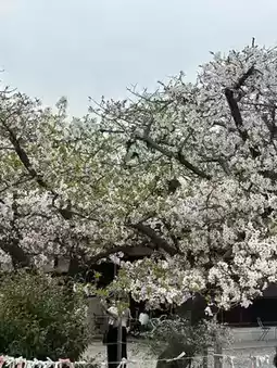 There is a statue of Toyotomi Hideyoshi, surrounded by blooming Oshima cherry blossoms.