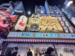 From the moment I stepped out of Namba Station and into the sensory overload of Dotonbori, I knew I was in for something unforgettable. The air buzzed with energy ⚡, the scent of sizzling street food curled through the alleys 🍢, and the iconic neon signs—especially the ever-smiling Glico Running Man 🏃♂️—lit up the dusk like a scene from a cyberpunk dream.