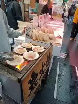 Kuromon Market is totally a street food paradise. Besides super fresh sashimi, there are grilled items, rice bowls, fried foods... Each shop has its own specialty. We had 🍣 tuna sashimi + 🍱 tempura rice bowl + 🦪 butter-grilled scallops + 🦪 large fresh oysters + sea urchin + 🍤 tempura jumbo shrimp + 🐙 octopus balls + 🦀 crab shell grilled... Everything was incredibly fresh and sweet 🤗 We wanted to encore every single dish 🤭
