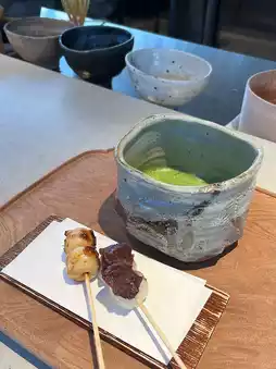 The menu is limited to a tea set, with a choice of matcha, sencha, or bancha. It comes with grilled dango and costs 500 yen.
