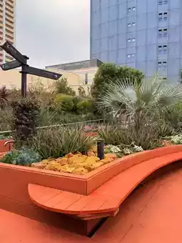 The entire building resembles a layered hill, with plants covering the exterior walls and rooftop. It’s open from 10 AM until late at night, making it perfect whether you come here to shop, eat, watch a movie, or simply take a walk, daydream, or meet friends to chat. Actually, if you don’t want to enter the mall and just want a quiet stroll, you can take the pathway from the back and walk all the way up. Each level offers different scenery, making it feel like you’re slowly climbing a city garden.