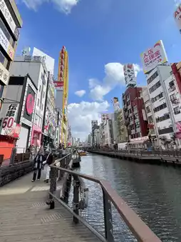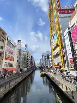 The Dotonbori street runs alongside a canal, offering a vibrant mix of dining, shopping, and photo opportunities all in one place.