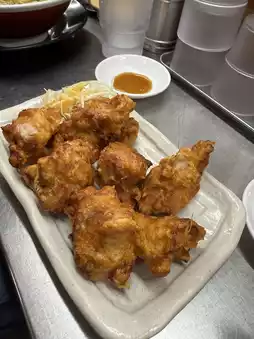 This shop is called Tenryu-ramen Hassenro. We stayed at the 3U Hotel. The staff recommended it because it was very close to our accommodation. We were not disappointed. The shop is quite small and there are not many seats. The shop has menus in Thai, Chinese and Korean, so don't worry about not being able to order. The staff at the shop provided excellent service. Today we ordered spicy ramen. It tasted delicious. The soup was well-rounded and not too spicy. The pork was soft and easy to chew. It was just right. We also ordered gyoza and karaage chicken. Everything was delicious. The price was also affordable. If you are staying in this area, please stop by. 🍜🥟🍚