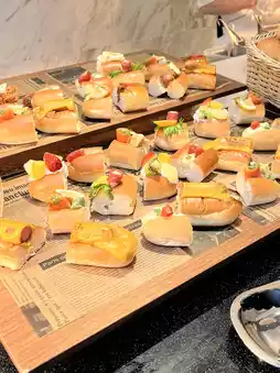 Breakfast had a huge variety! I had a freshly made omelette, plenty of fruits and sandwiches, and traditional Japanese options too. The rice was delicious, and both the beef soup and corn soup were great.
